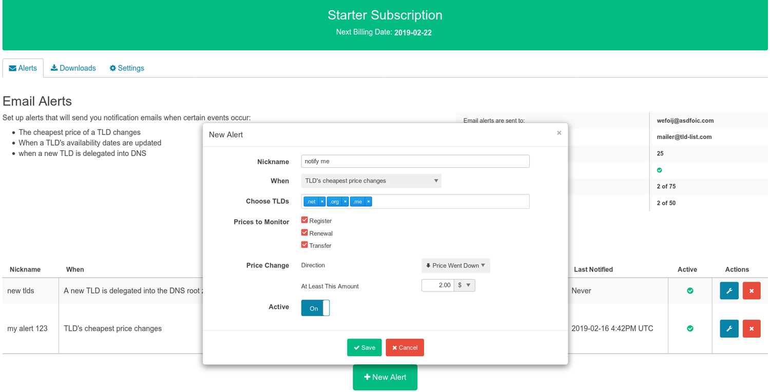 TLD-List dapat mengirimi Anda peringatan email ketika peristiwa tertentu terjadi: